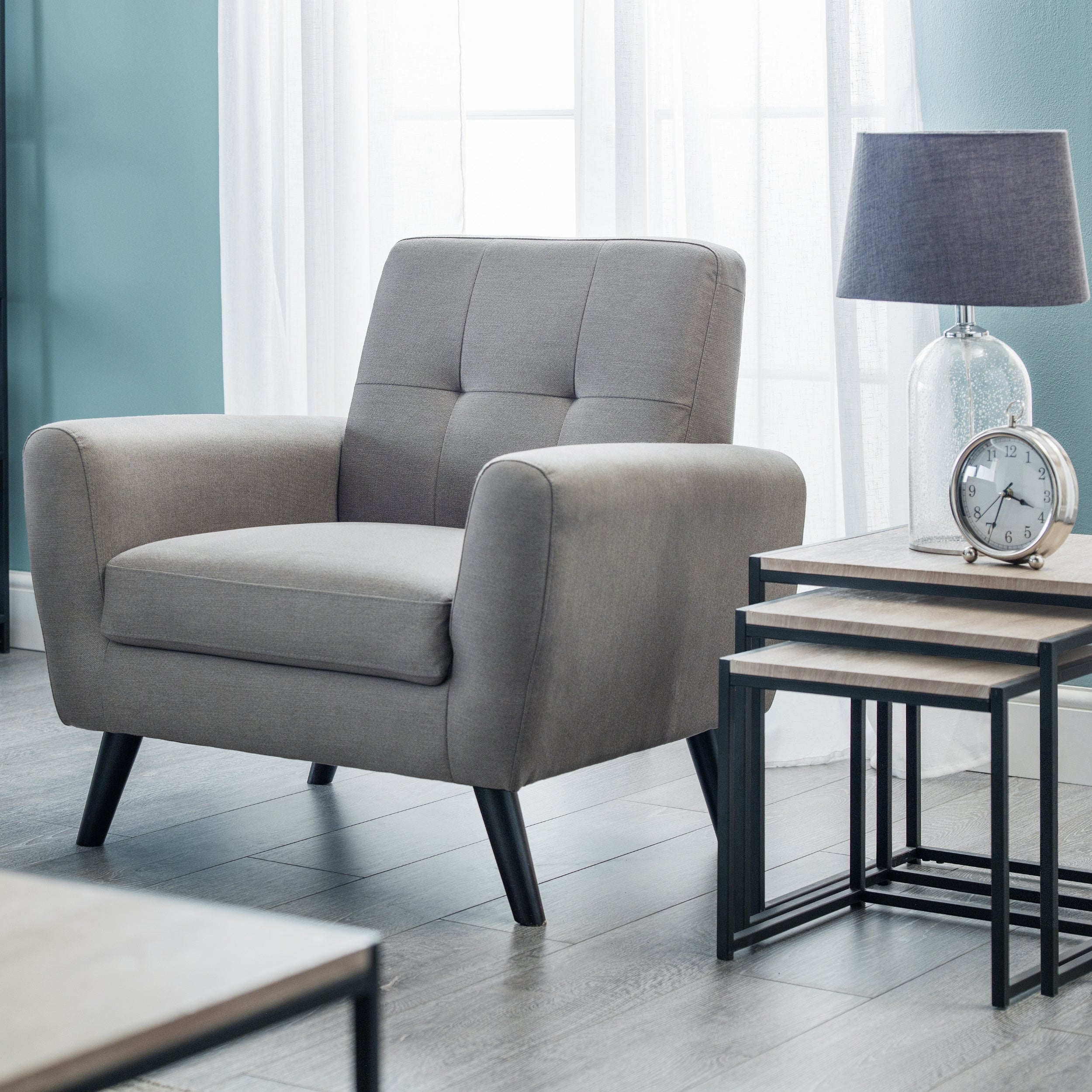 The Monza Armchair is  compact and stylish with retro Scandinavian design influences. It is impeccably tailored in a smart Mid Grey Linen Fabric. Monza has a seat that is deeper than most similarly sized armchairs, and is consequently incredibly comfortable. Its clean lines and slick design make it a real focal point for any modern living space. Part of the wider Monza upholstery range from Julian Bowen.