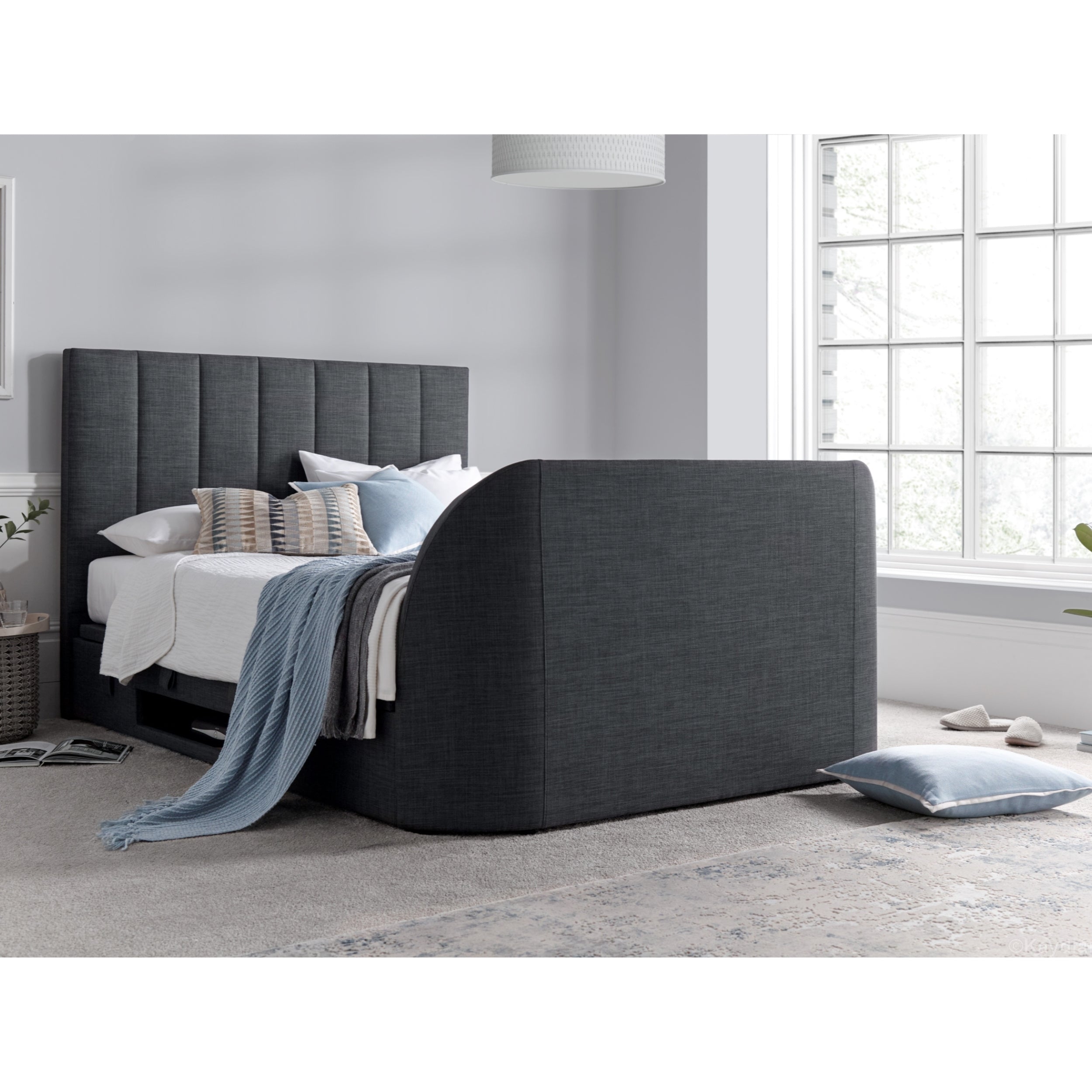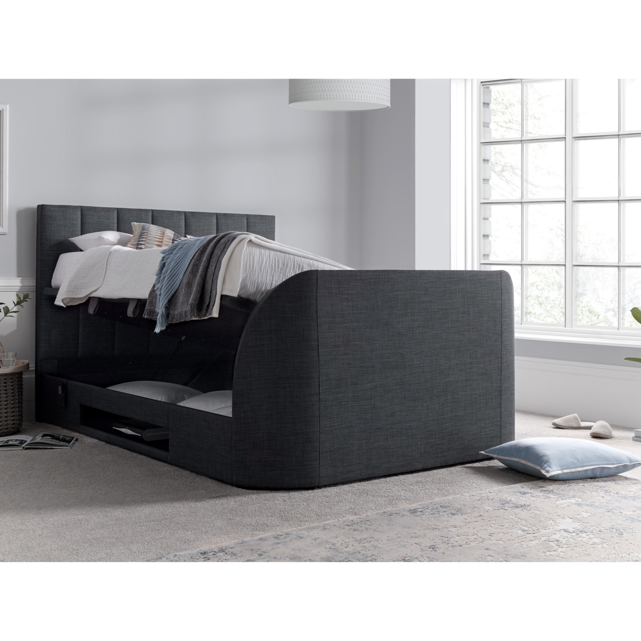 Medburn / Medway TV Ottoman Bed in Pendle Slate Fabric