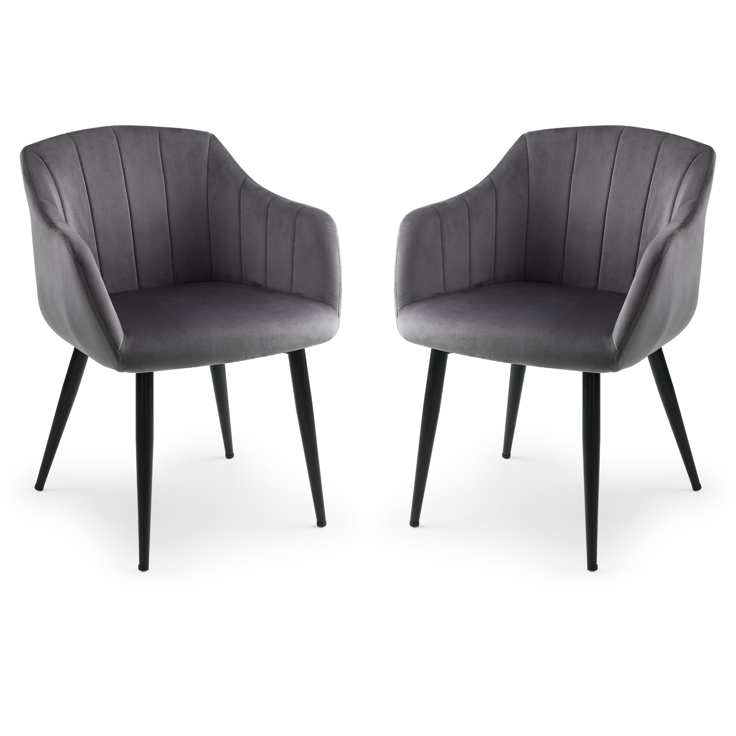 Hobart Scalloped Dining Chairs Grey Velvet with Matte Black Legs(2 Chairs)